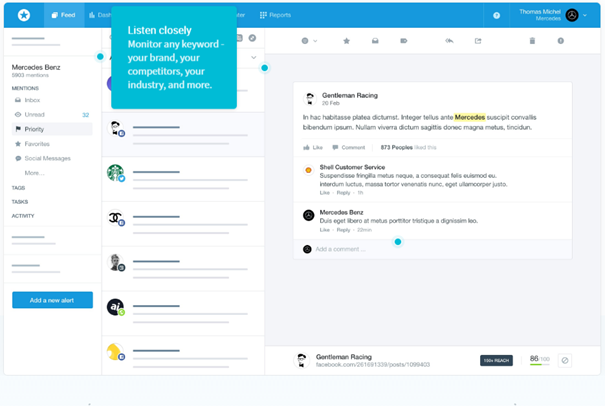 Mention is a user-friendly tool that monitors all the major social media channels on the web to keep you up-to-date and informed every time someone mentions you, you brand, competitors, or targeted keywords.