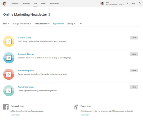 3. MailChimp for email marketing