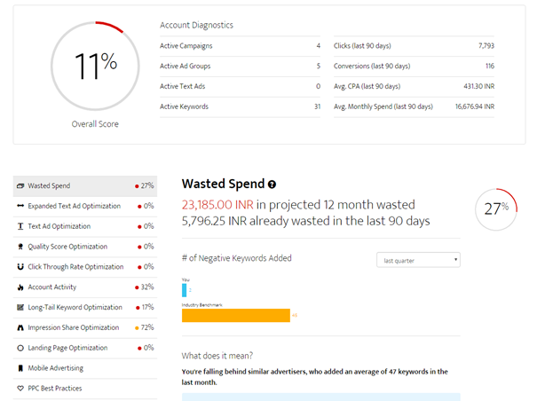 WordStream is a top-notch tool that will not only set you up and provide proper data on your Google AdWords and social media PPC campaigns, but also will alert you with insights on how to adjust your approach to save money and see better results.