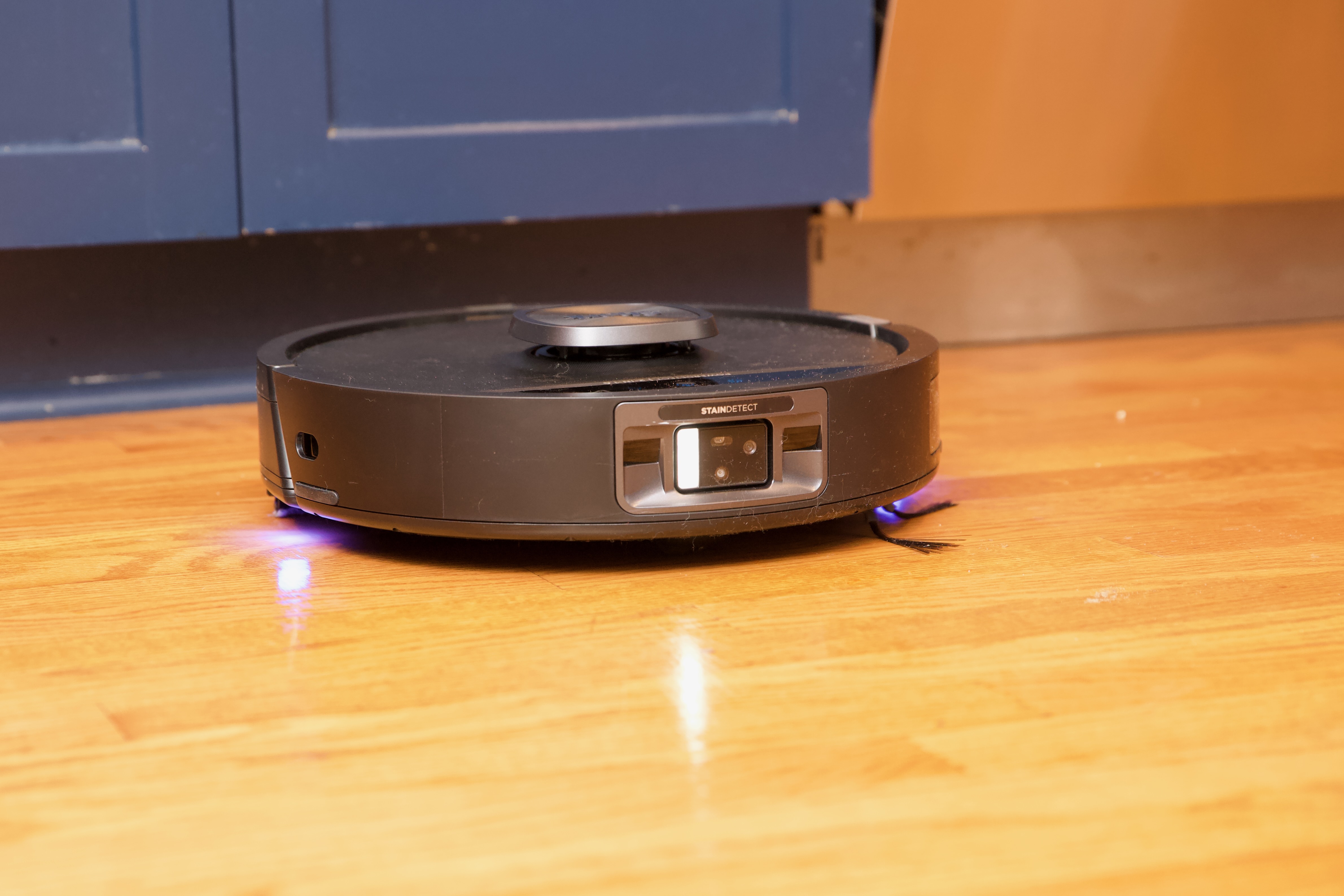 I like how it puts on a little light show to give you a visual indicator of what the robot is doing. Purple shows its detected dirt and will boost suction, blue indicates a stain, and red is an error message. My favorite useless feature, however, is how the robot does a little twerk every time it exits the base; it’s frankly adorable.