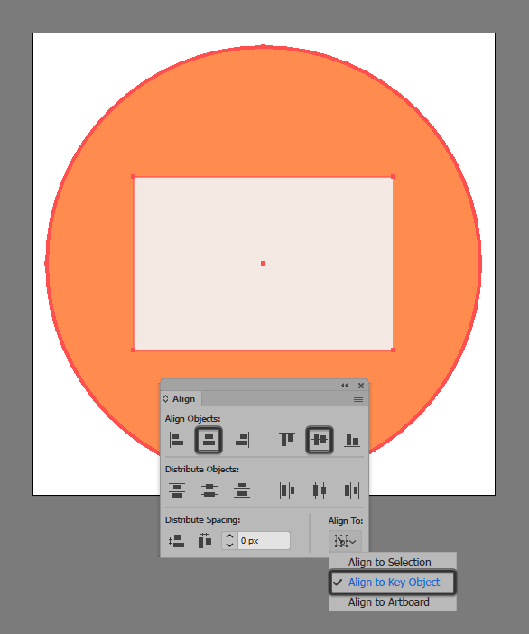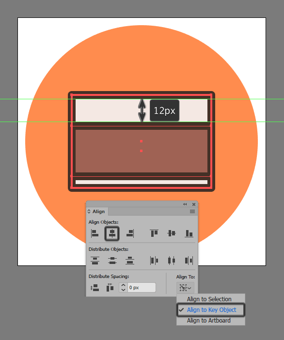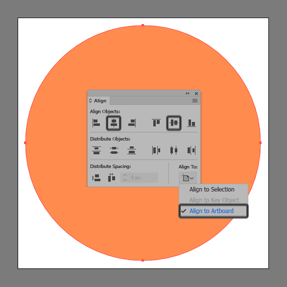 Once we’ve set up our project file, we can start working on the actual icon, and we will do so by creating its background using a 120 x 120 px circle, which we will color using #FF8D4D, and then center align to the underlying Artboard using the Align panel’s Horizontal and Vertical Align Center options.