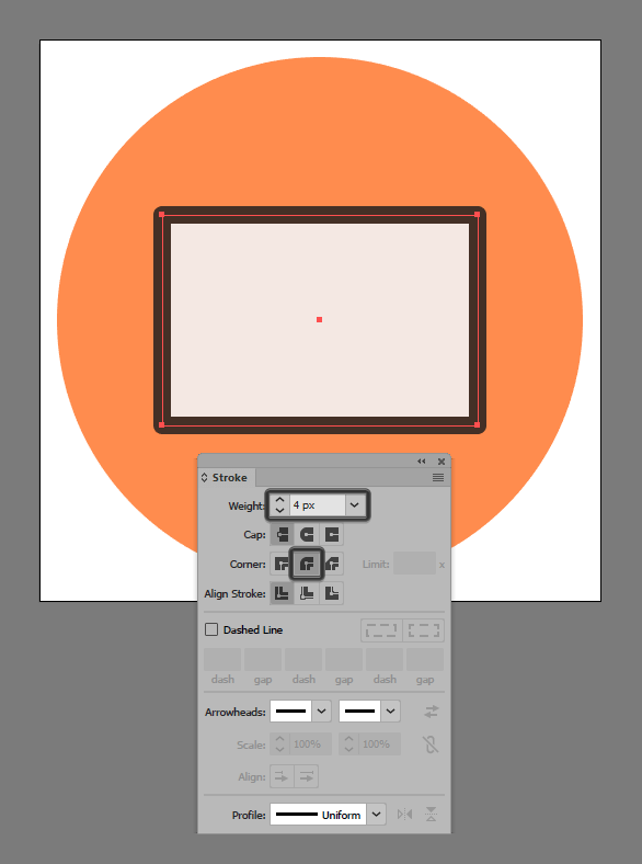 Give the shape that we’ve just created an outline using the Stroke method, by creating a copy of it (Control-C) which we will paste in front (Control-F) and then adjust by first changing its color to #422C21, and then flipping its Fill with its Stroke (Shift-X) making sure to set its Weight to 4 px and its Corner to Round Join. Then, before moving on, select both shapes and group them together using the Control-G keyboard shortcut.