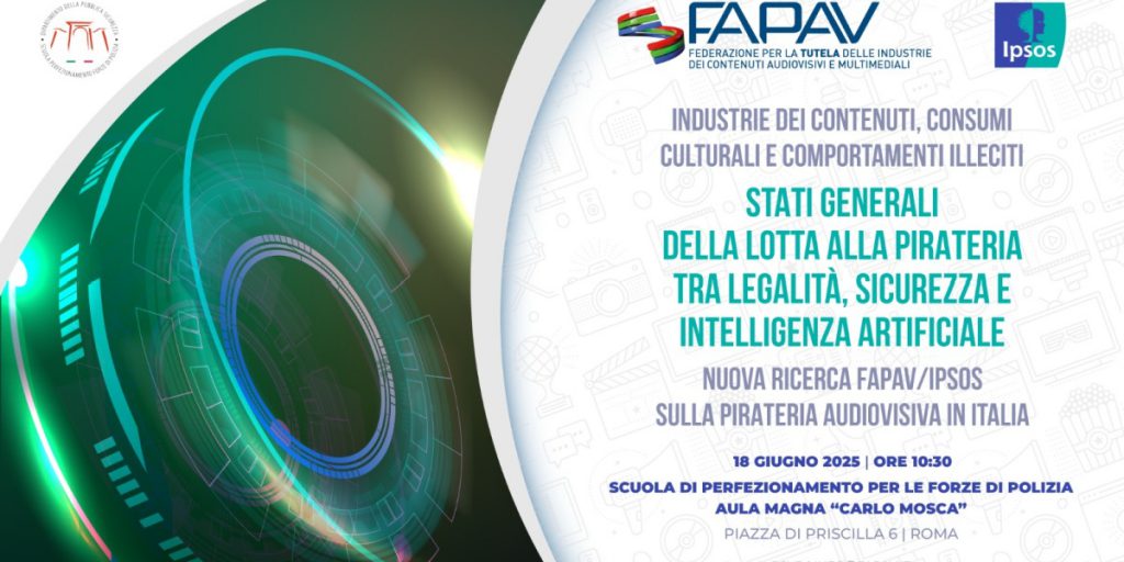 Per questo la FAPAV – Federazione per la Tutela delle Industrie dei Contenuti Audiovisivi e Multimediali organizza, in collaborazione con Ipsos, per il 18 giugno prossimo a Roma gli “Stati Generali della Lotta alla Pirateria tra Legalità, Sicurezza e Intelligenza Artificiale”, un convegno di rilevanza nazionale finalizzato ad affrontare una delle sfide più complesse dell’ecosistema digitale contemporaneo: la lotta alla pirateria audiovisiva.