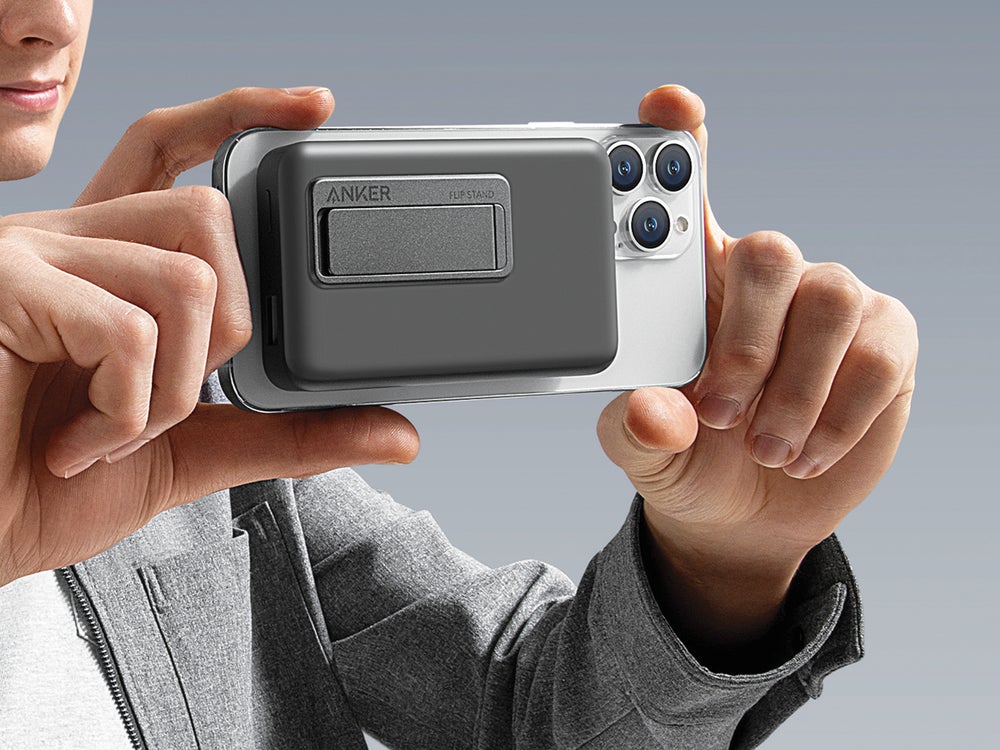 What do you do when your phone’s battery drains, but you can’t wait for a charge? Most on-the-go chargers are clunky, but the Anker 633 Magnetic Battery [$80; us.anker.com] uses a magnet to cling to the device’s backside, wirelessly charging your smartphone on the go. The 10,000mAh battery is punchy enough to revive a phone nearly twice, and with a flip-out leg, it acts as a kickstand for video calls. It works with iPhone 12s and newer, but older models can connect through the USB-C port..