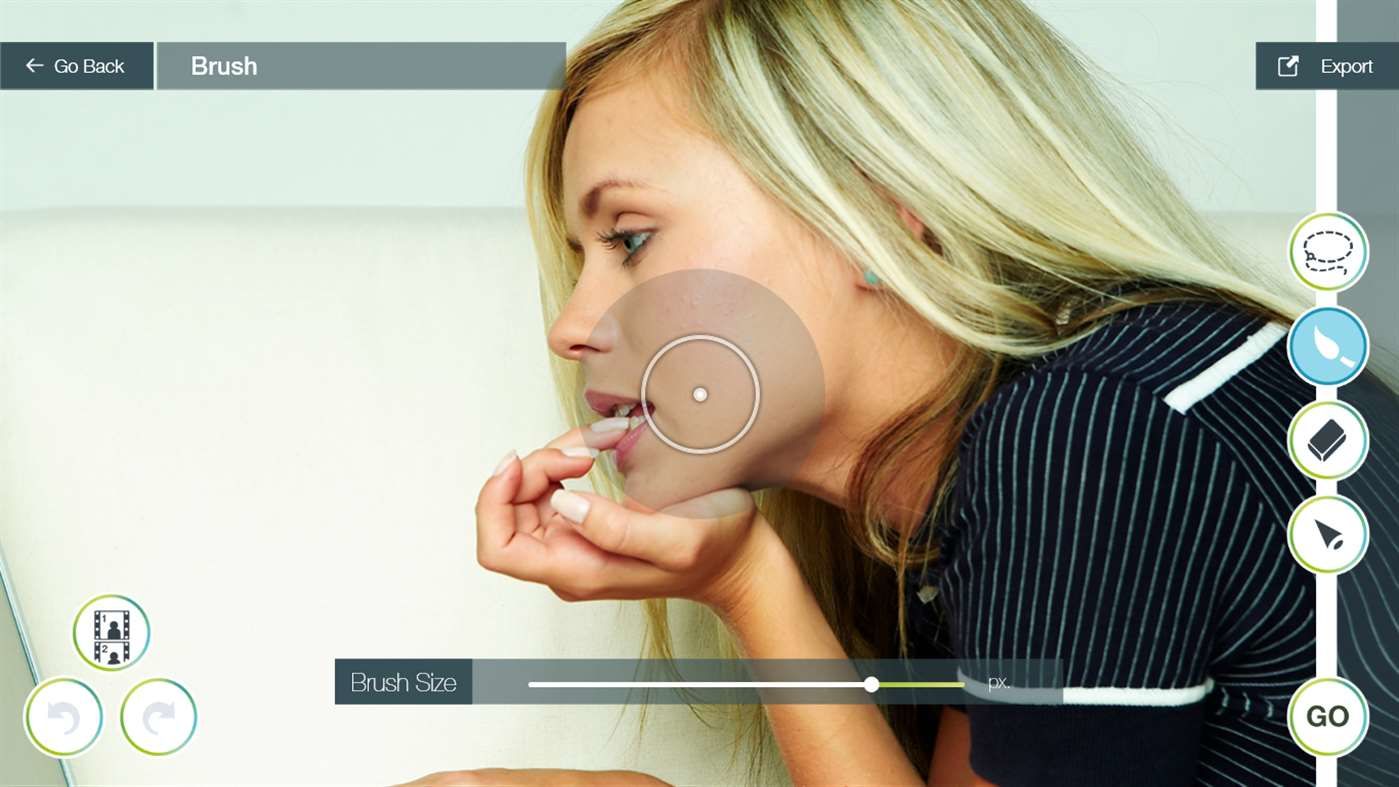 Retouch faces, hair, skin and bodies with selection brushes, plus remove unwanted objects and red eye, apply single-plane and dual-plane perspective correction.