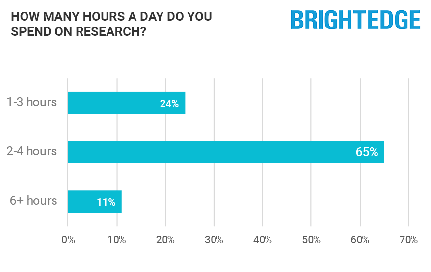 According to BrightEdge market research, typical organic search practitioner uses an average of six tools and can spend up to four hours a day on research, reporting and analysis. In the past, it was difficult for search marketers to truly understand the customer journey as it happens and maximize revenue. But today, the real-time SEO shift allows SEOs to provide real-time recommendations with real-time data, driving even more revenue to their organization.