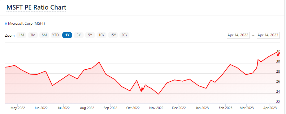 Important to remember that interest rates have risen dramatically over the past 12 months. Normally, this would have a noticeably contractive effect on stock valuation multiples. This makes the recent expansion in MSFT multiples even more pronounced.