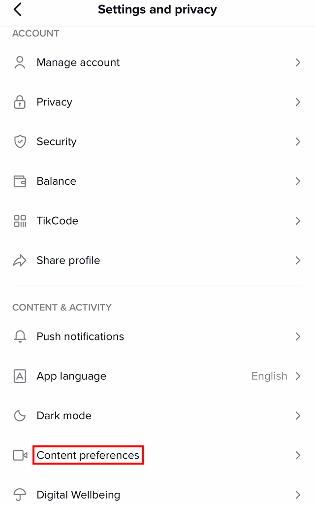 Step 3: Under the “Content & Activity” section, tap “Content preferences.”