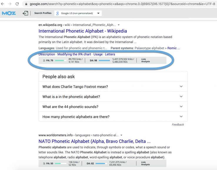 4. Scan ranking URLs’ Domain Authority with MozBar