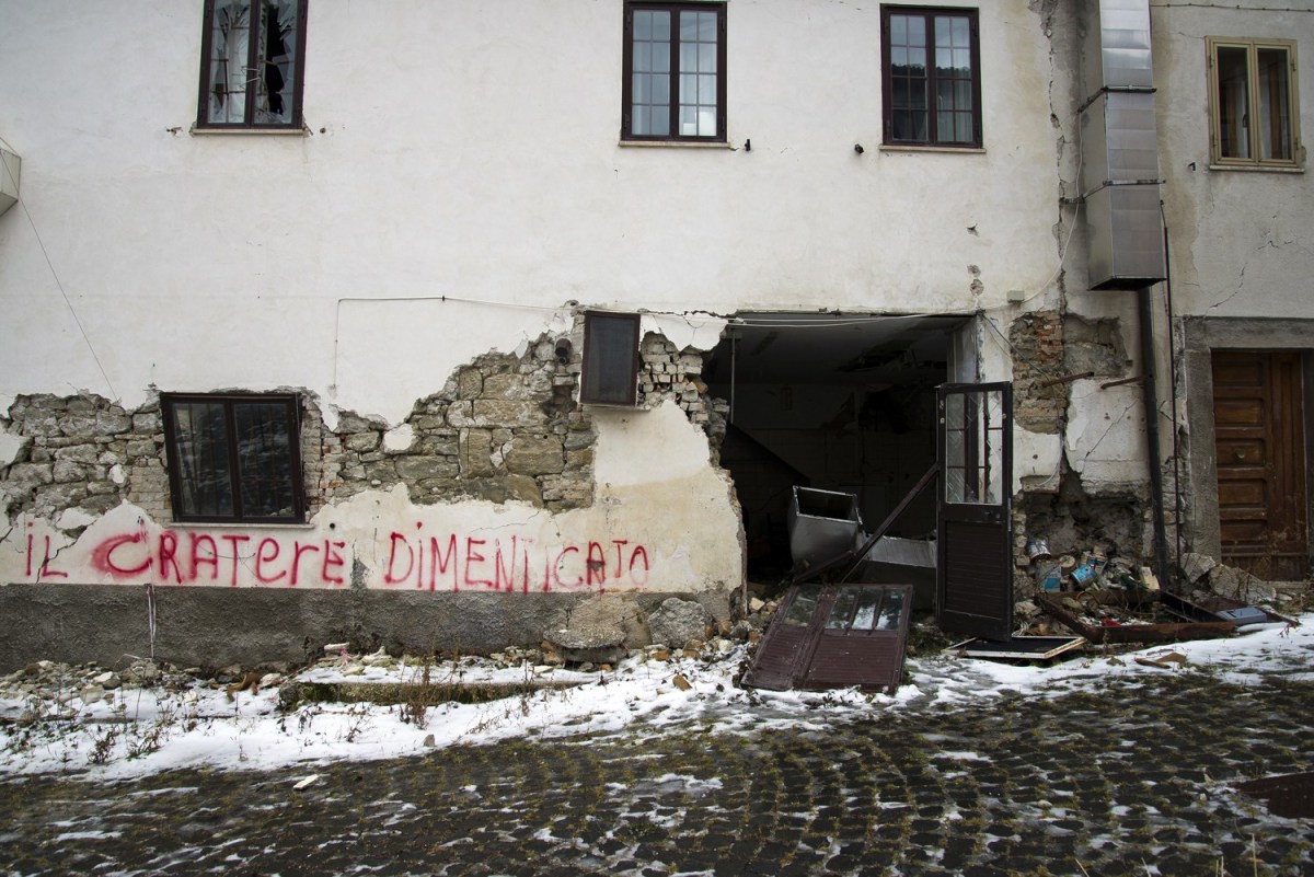 Located about 50 kilometres from each other, these disasters have killed nearly 600 people, injured thousands and displace more than 80,000. The victims lost their loved ones, their home or their job, often all three of these combined. The early rage gave way to bitterness and a sad dejection: all, public authorities, fellow citizens and the media, forget them. “Forgotten”, “abandoned”, “ignored”. Those words appear like a sad song on graffitis in the village of Campotosto and in the testimonies of Roberto in Capricchia, Giorgia in Fossa in the province of L’Aquila and all the people encountered in the field.