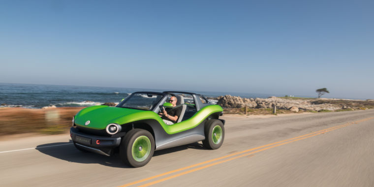 CARMEL, CALIF.—Do you remember that bright green electric beach buggy that Volkswagen showed off back in March? It’s called the ID Buggy, and it’s one of a growing number of ID-badged concepts from the automaker that show the way to its post-diesel future. It’s a wildly different-looking bunch, yet each uses VW’s new modular architecture for battery electric vehicles, called MEB. The ID Buggy is definitely the most left-field of the ID vehicles, even without the bright green bodywork. But under that one-off concept body is a production MEB powertrain, just like the one that will appear in the Europe-only ID 3 as well as the US-bound ID Crozz crossover and ID Buzz BEVs. But the craziest thing about the Buggy isn’t the way it looks or that VW let me drive it. No, the craziest thing about the Buggy it’s the fact that VW is actively exploring ways to put it into production.