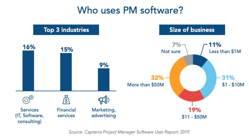 While it’s difficult to estimate how many marketing departments are using workflow and project management tools and how much they’re spending on them, a Capterra user survey indicates that marketing and advertising companies are outpaced only by IT and financial services businesses when it comes to utilization of this type of software.