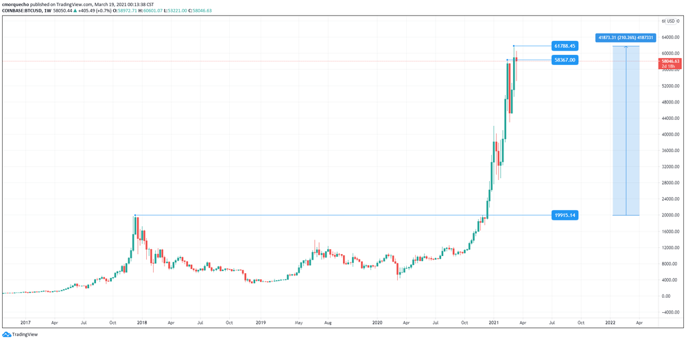 Weekly chart, Bitcoin price action, March 2021 / Image: Trading View