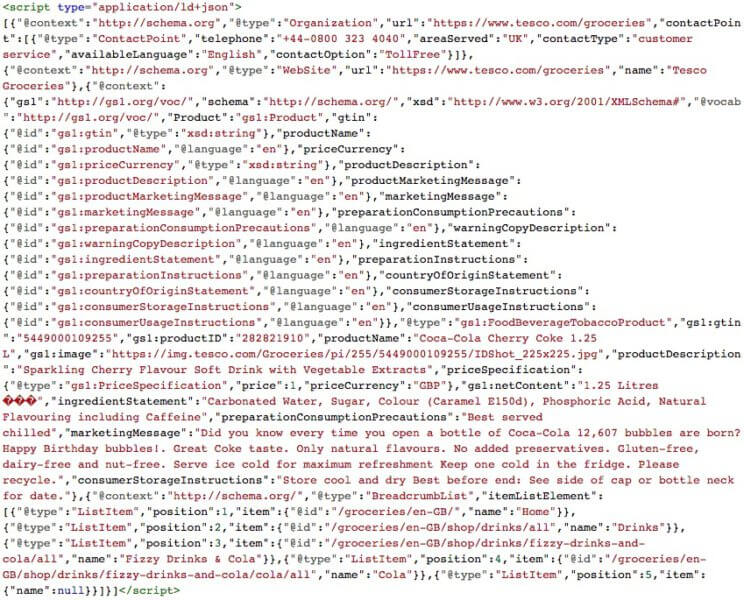 Tesco is an online grocery site based in the United Kingdom (UK) and currently leverages the GS1 SmartSearch format for their products.