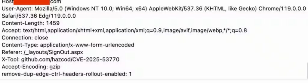 Microsoft said these requests upload a malicious script named spinstall0.aspx, or alternatively spinstall.aspx, spinstall1.aspx, spinstall2.aspx, and so on. The script contains commands for retrieving a SharePoint server’s encrypted MachineKey configuration and returning the decrypted results to the attacker through a GET request.