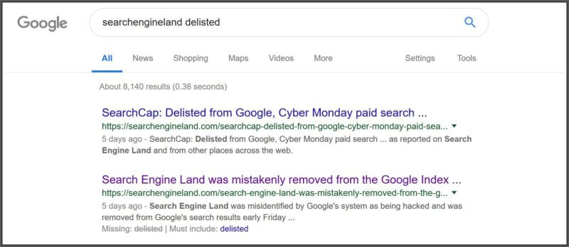 Last Friday, Google mistakenly delisted Search Engine Land from its index and search results. That meant none of our pages showed up in Google search — none.