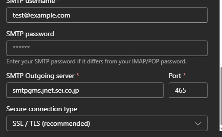 Similarly, results when adding a new account for test@example.com in Outlook looked like this: