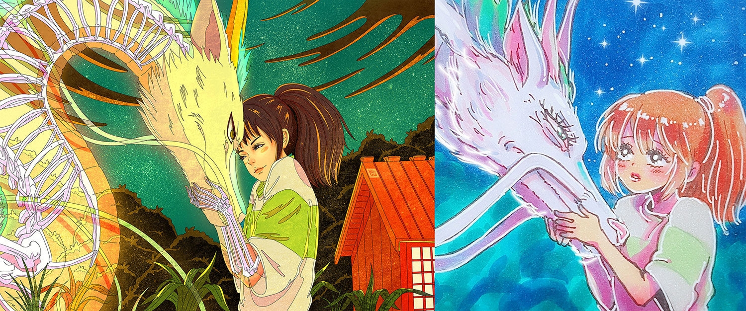 Or for a fan art collaboration, we share a pic of a scene from the animation we both love and draw it in our style. For example, for my collaboration with my friend Thumin we picked a scene from Spirited Away.