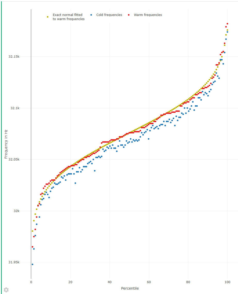 Those heat effects paled in comparison to the natural clock variation across different consoles, though. The slowest and fastest DSPs in Cecil’s sample showed a clock difference of 234 Hz, or about 0.7 percent of the 32,000 Hz specification.