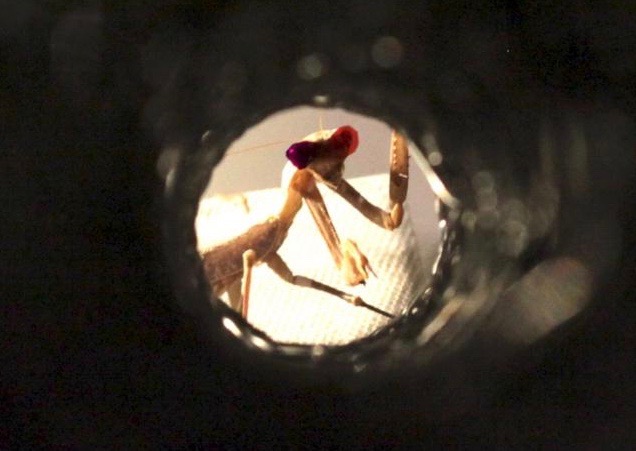 The mantises had to watch these films through the bug version of those old-school 3D glasses with differently colored lenses that show different views to each eye. But getting the mantises to actually wear the glasses was a bit of a challenge. Unlike humans, their ears don’t provide convenient handles on either side of their heads (their one ear is in the middle of their chest). So instead, the researchers had to temporarily stick the colored lenses to the mantises’ faces using a non-toxic beeswax glue. “They were quite helpful, except when they didn’t like their glasses,” says Vivek Nityananda, a neuroscientist at Newcastle University who led the study. “You’d come back into lab the next day and you’d find they’d removed the glasses, and you’d have to fit them all over again.”