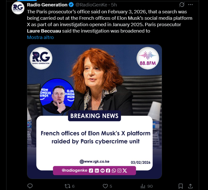 Per le autorità francesi non è solo un problema di moderazione dei contenuti, ma di responsabilità penale della piattaforma e dei suoi vertici. X respinge le accuse e parla di un’azione “politicamente motivata”, sostenendo che si tratti di un attacco alla libertà di espressione. Ma il segnale lanciato da Parigi è chiaro: gli algoritmi non sono più una zona grigia giuridica.