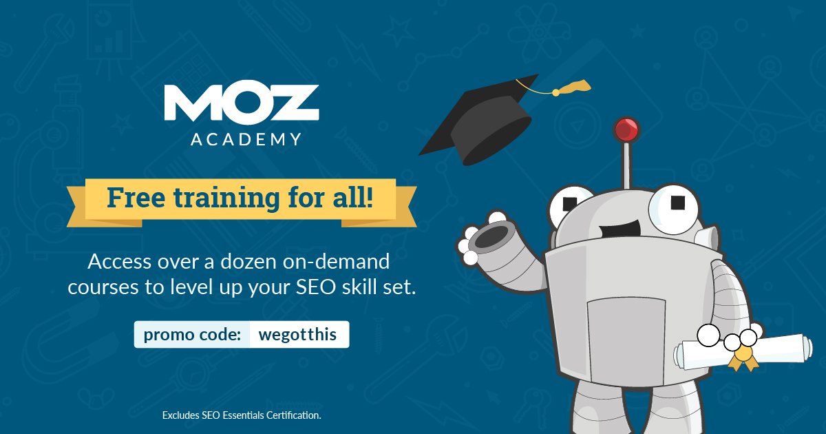 Today through May 31, you’ll be able to access the courses in Moz Academy for free. Hopefully you can use this resource to level up your skills, learn a new discipline, or simply channel your energy into a productive distraction.