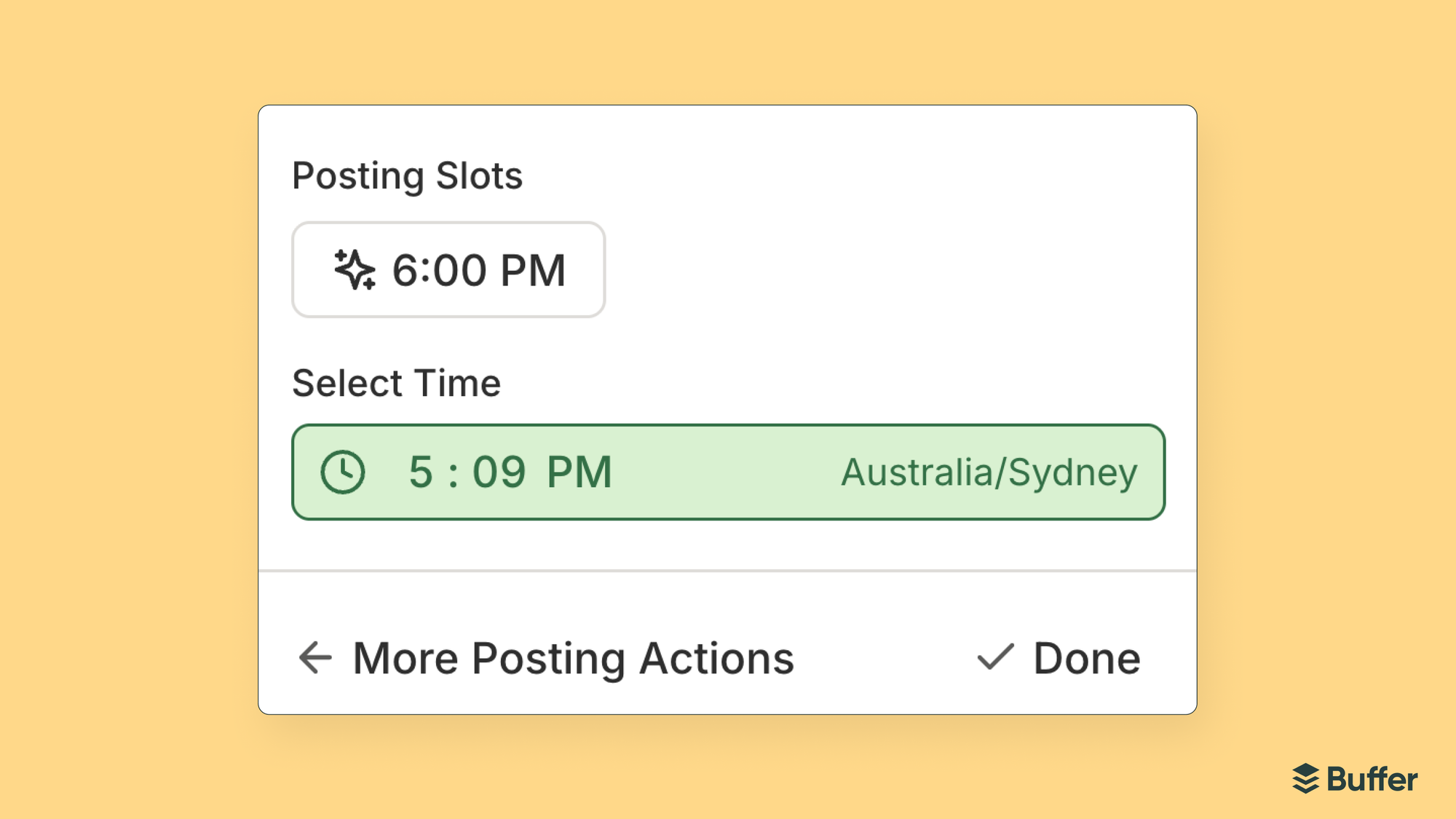 When you’re setting up a posting schedule, Buffer will now suggest times based on proven patterns across each network. You can accept the recommendations and let Buffer handle the timing, or customize your schedule if you prefer specific control. If you’re new to Buffer, this removes the guesswork and gets you posting at times that are likely to work.